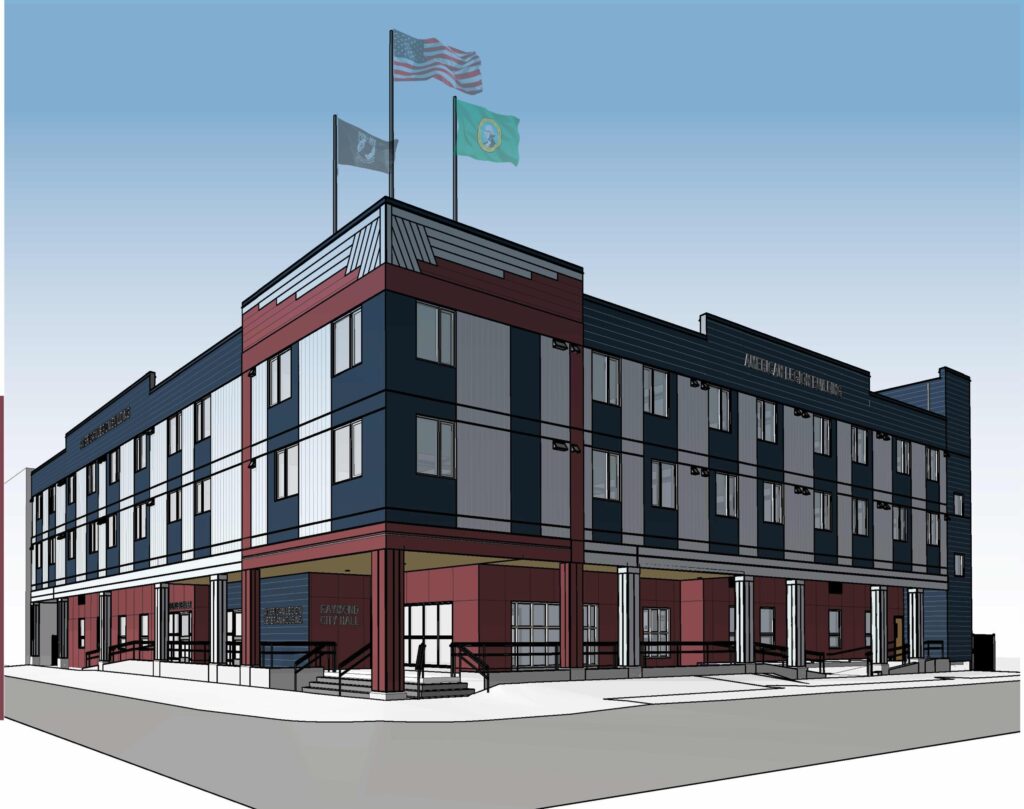 The Willapa Community Development Association (WDCA) in partnership with the City of Raymond and local American Legion Post 150, is moving forward with the purchase and demolition of the deteriorating American Legion Building and the construction of a new flagship building on the site in the downtown Raymond. The first floor will have a Community Resource Center and Raymond City Hall. The 2nd and 3rd floors will have 18 affordable studio and one-bedroom apartments prioritizing veterans.